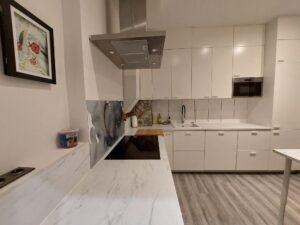 We hebben een volledig uitgeruste keuken met vaatwasser, over, magnetron, inductie-kookplaat, broodrooster, mixer, koffiemachine met capsules, waterkoker en potten, pannen, bestek, borden, glazen en kommen.
