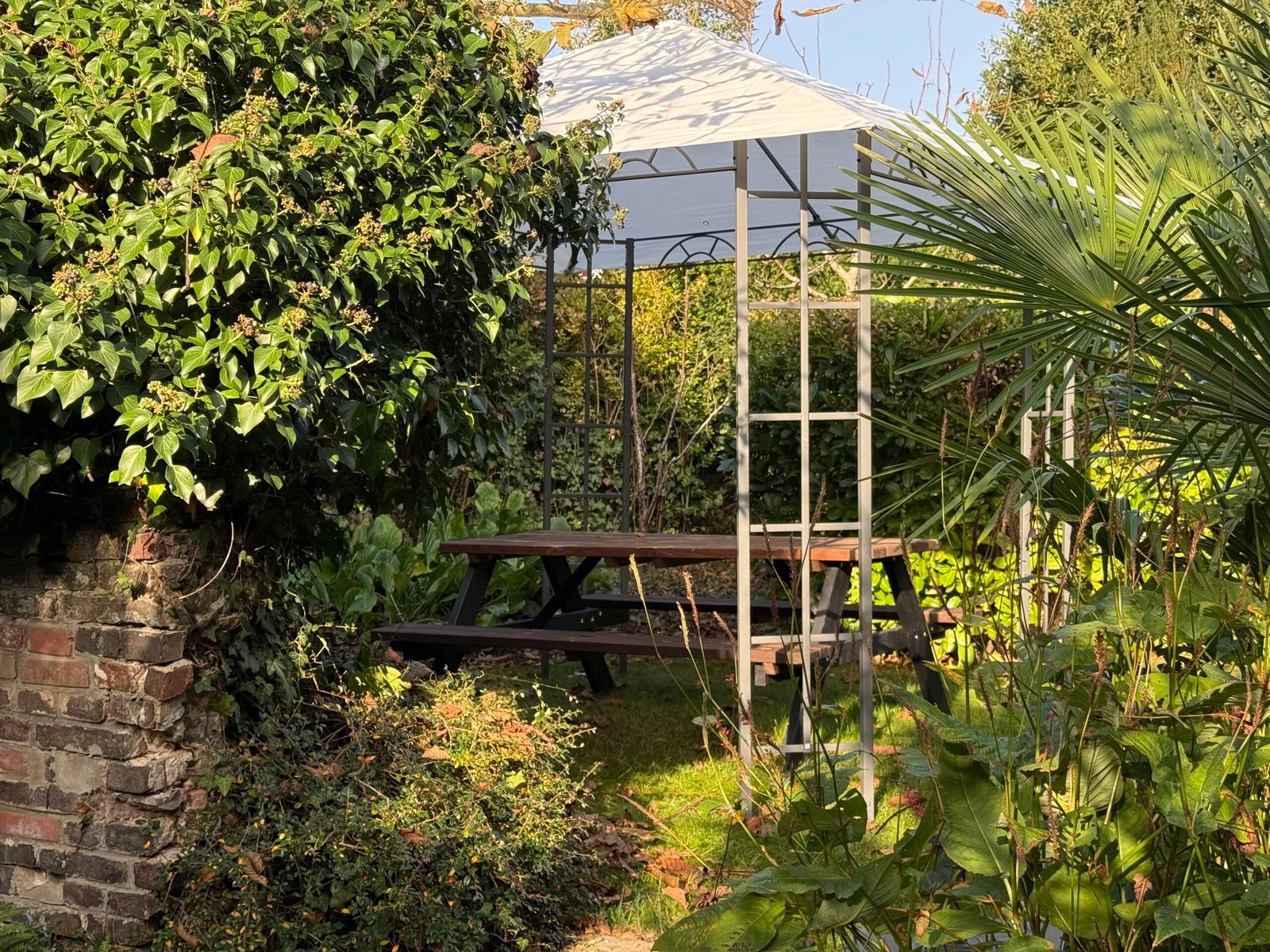 Er is een picknicktafel voor 6 personen, 2 ligstoelen, een parasol en een barbecue beschikbaar (houtskool graag zelf meebrengen).